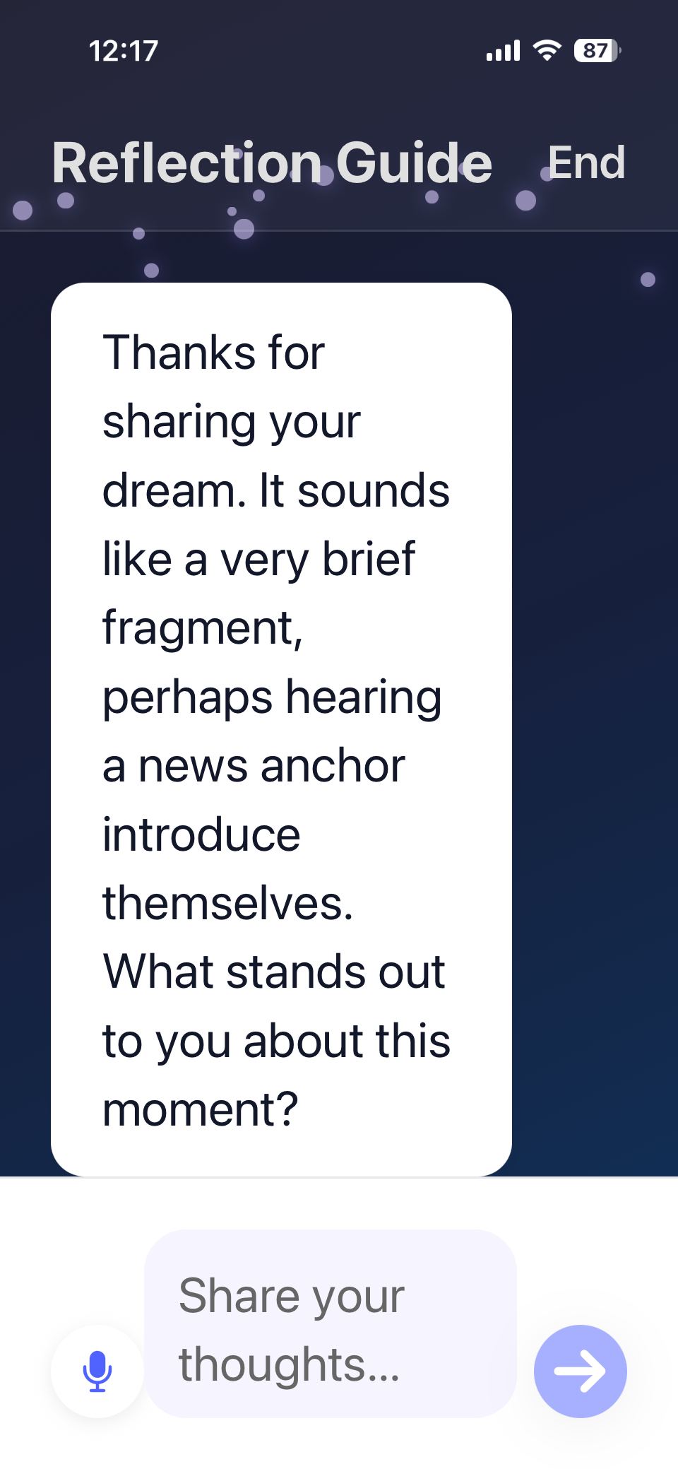 Our AI Dream Guide asks gentle questions to help you explore what your dream might mean.